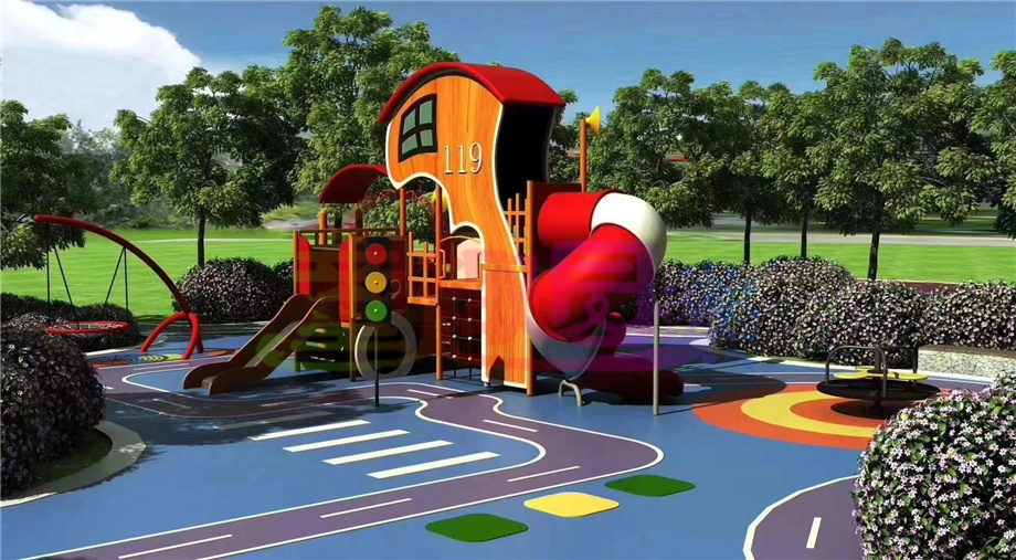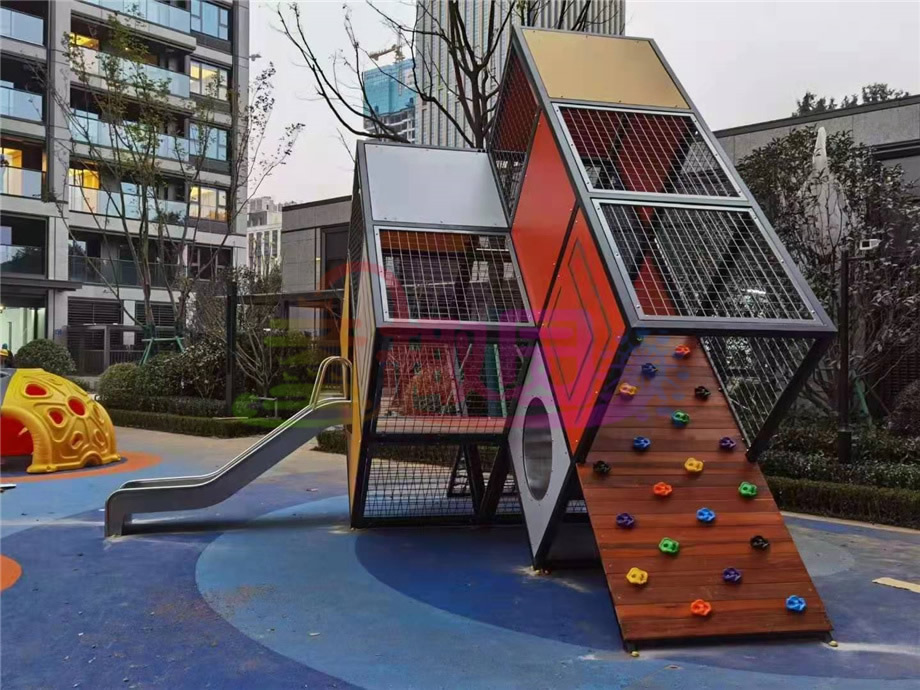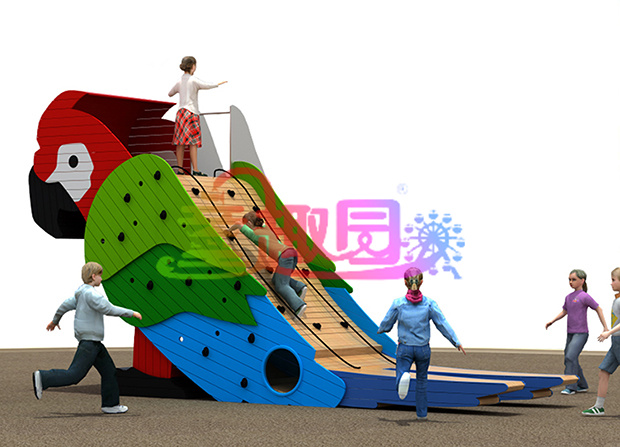 材料:原材料采用CO2 氣體保護(hù)焊工藝、經(jīng)過點(diǎn)焊,拉焊,補(bǔ)焊后,經(jīng)過質(zhì)檢人員檢查無誤,通過打磨拋光的方法除繡,接著采用拋砂工藝處理鐵件表面,隨后將阿克蘇漆粉通過噴槍,借助于噴槍壓力,均勻噴涂于被涂物表面,在鐵件專用高溫烤箱內(nèi)經(jīng)過230度高溫固化、最終成品表面光滑、色彩鮮艷、不易脫落;鉆洞和滑梯采用304不銹鋼,厚度3MM定制卷折邊焊接,所有邊角打磨光滑,不刺手整體拉絲處理,外形美觀;